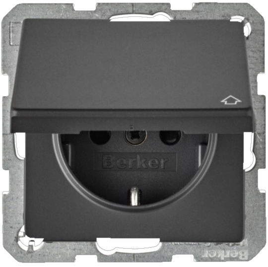 BERKER Q.x Gniazdo SCHUKO kompletne z pokrywą, samozaciski, antracyt aksamit, lakierowany