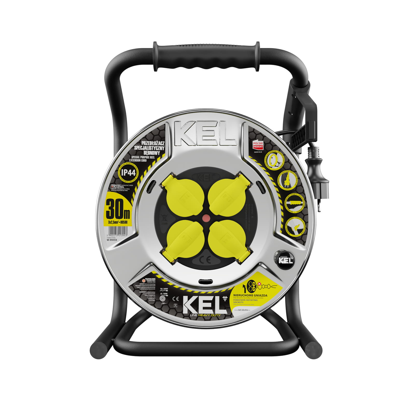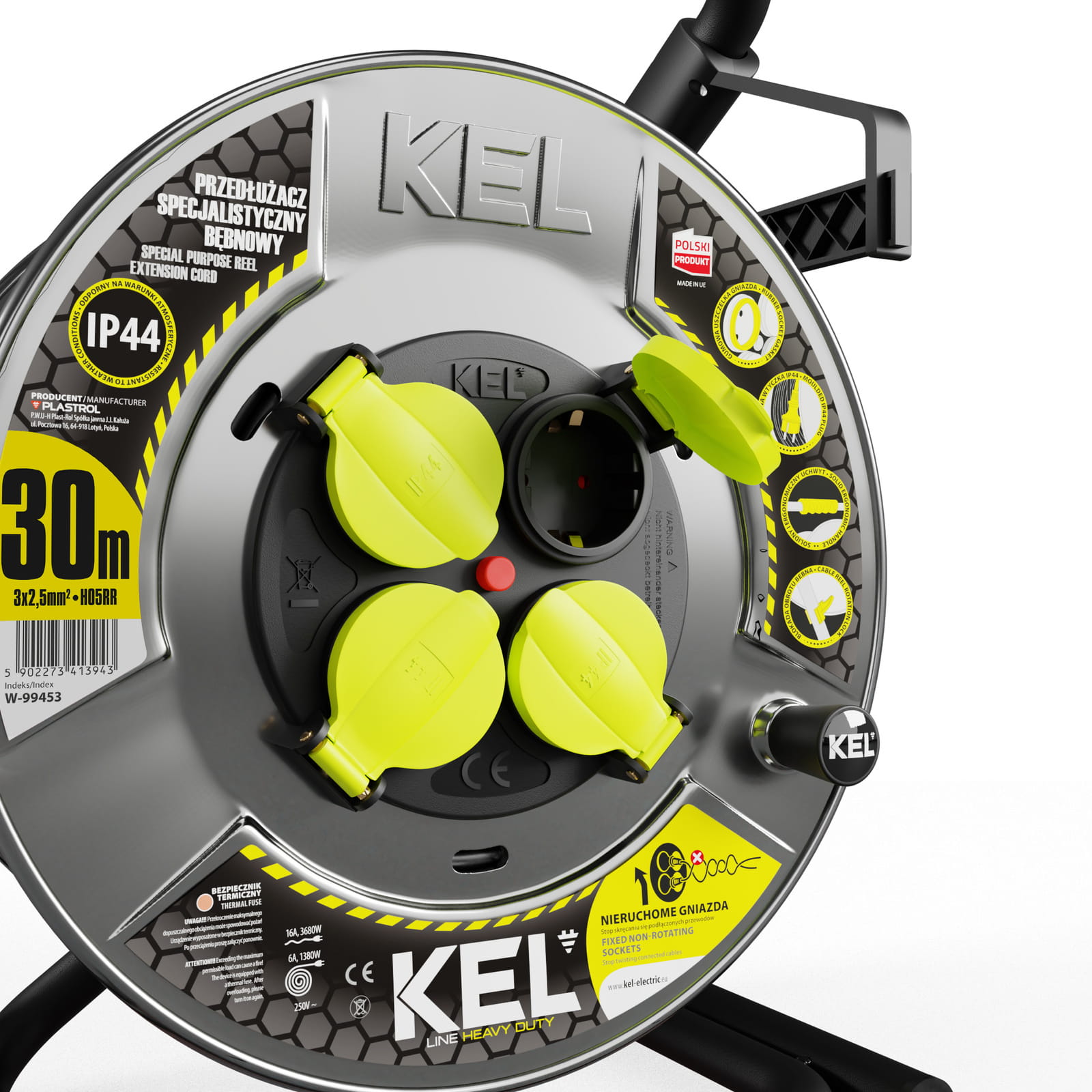 Przedłużacz bębnowy 30m 3x2,5mm HEAVY LINE 4x230V czarny z metalowym bębnem