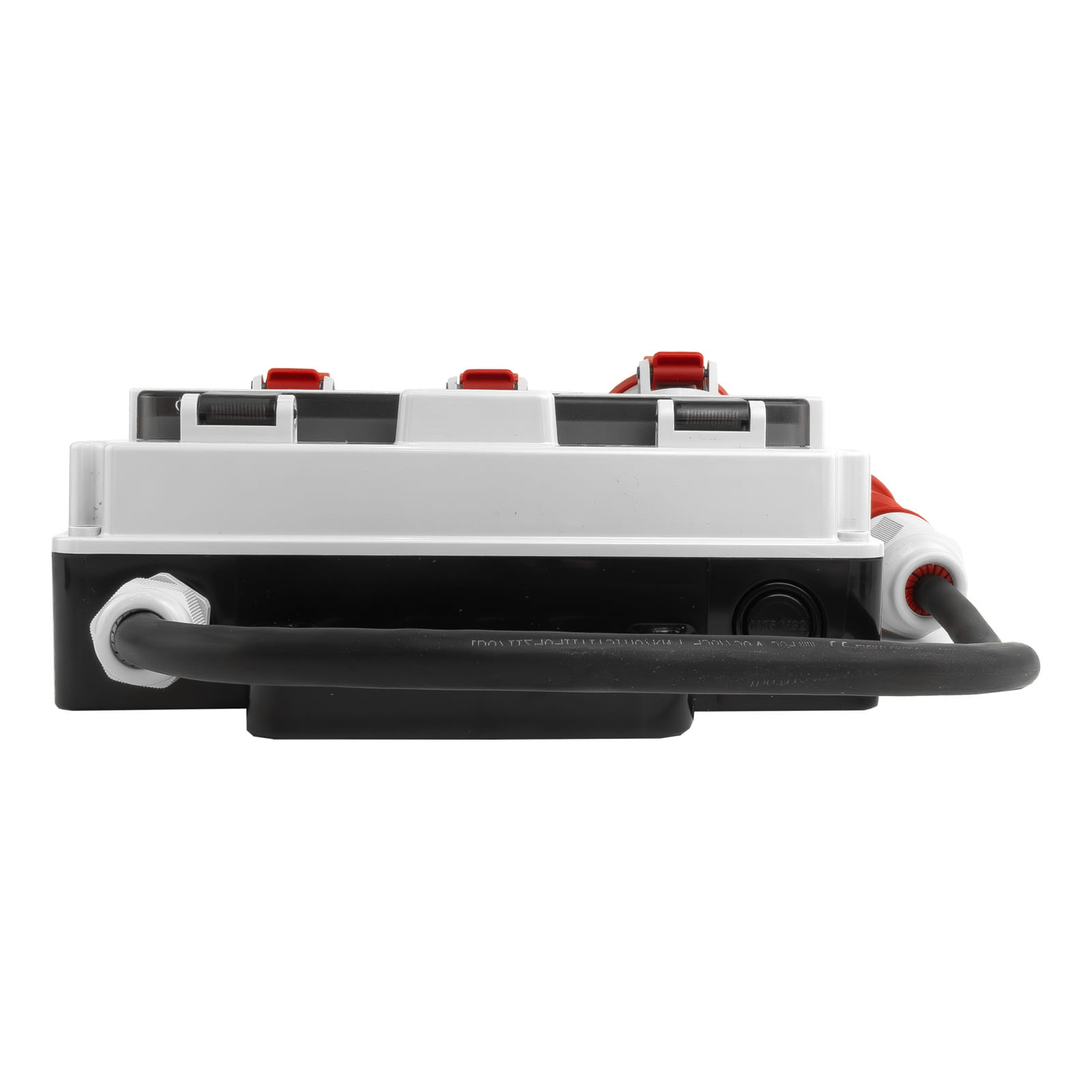 Model rozdzielnicy należący do serii TR. Wyposażona w 3 gniazda CEE oraz 4 gniazda 230V z bolcem ochronnym. Dodatkowym wyposażeniem jest uchywt oraz metrowy przewód z wtyczką CEE.