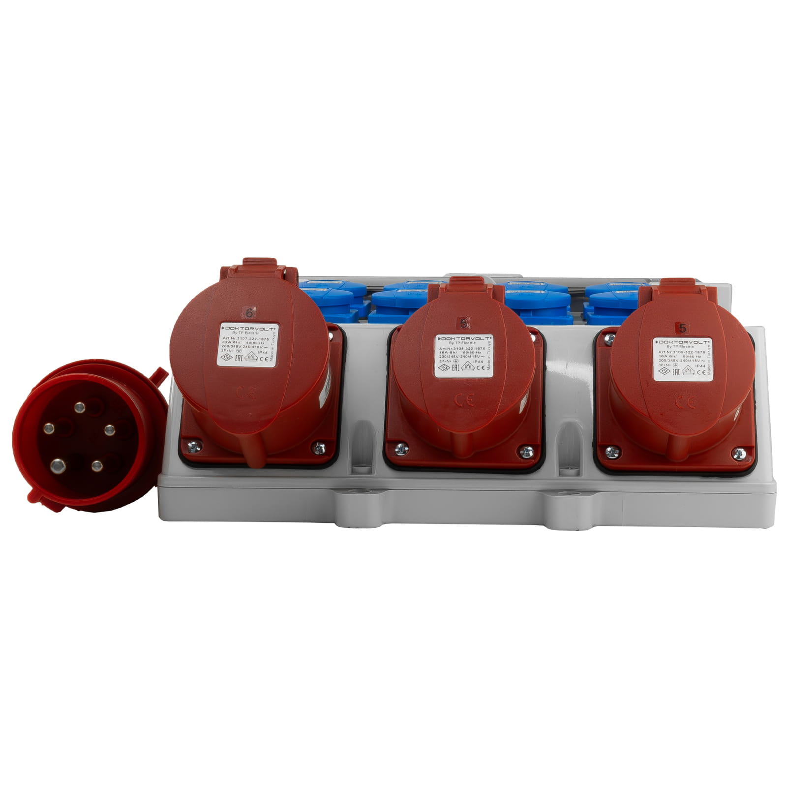 Rozdzielnica budowlana 2x16A 32A CEE z zabezpieczeniami erbetka IP44 8x230V Doktorvolt DV-5022-D TR-S/FI