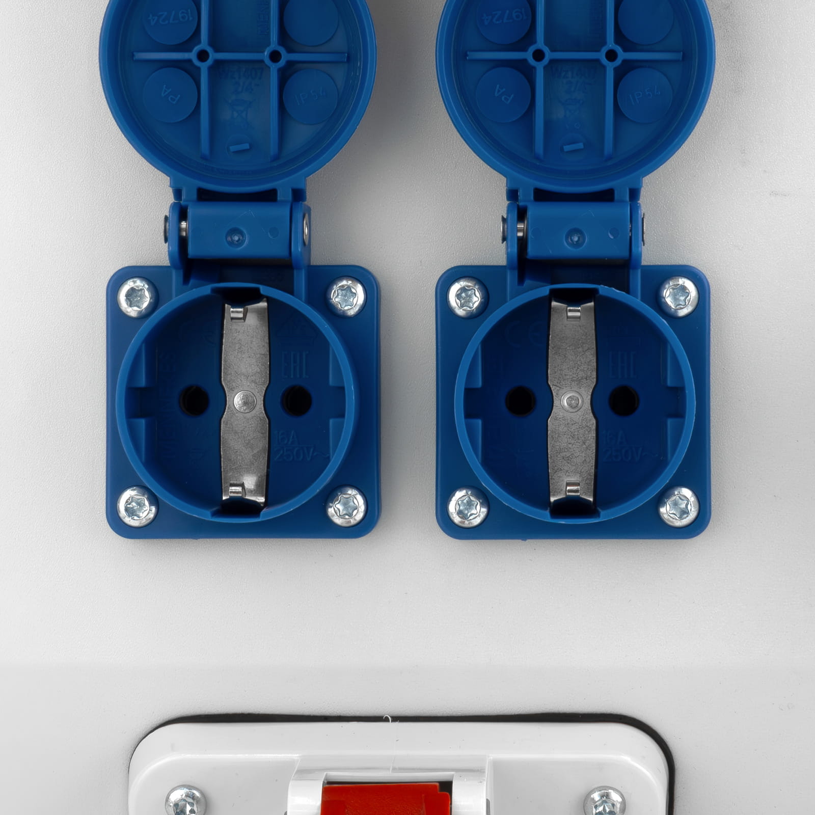 Gniazda 230V: 2x 230V 16A IP54 2P+E Mennekes system niemiecki Schuko