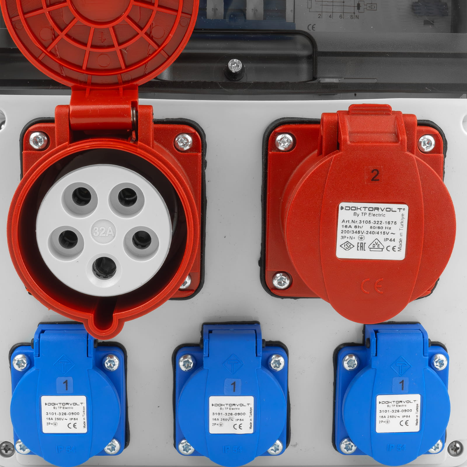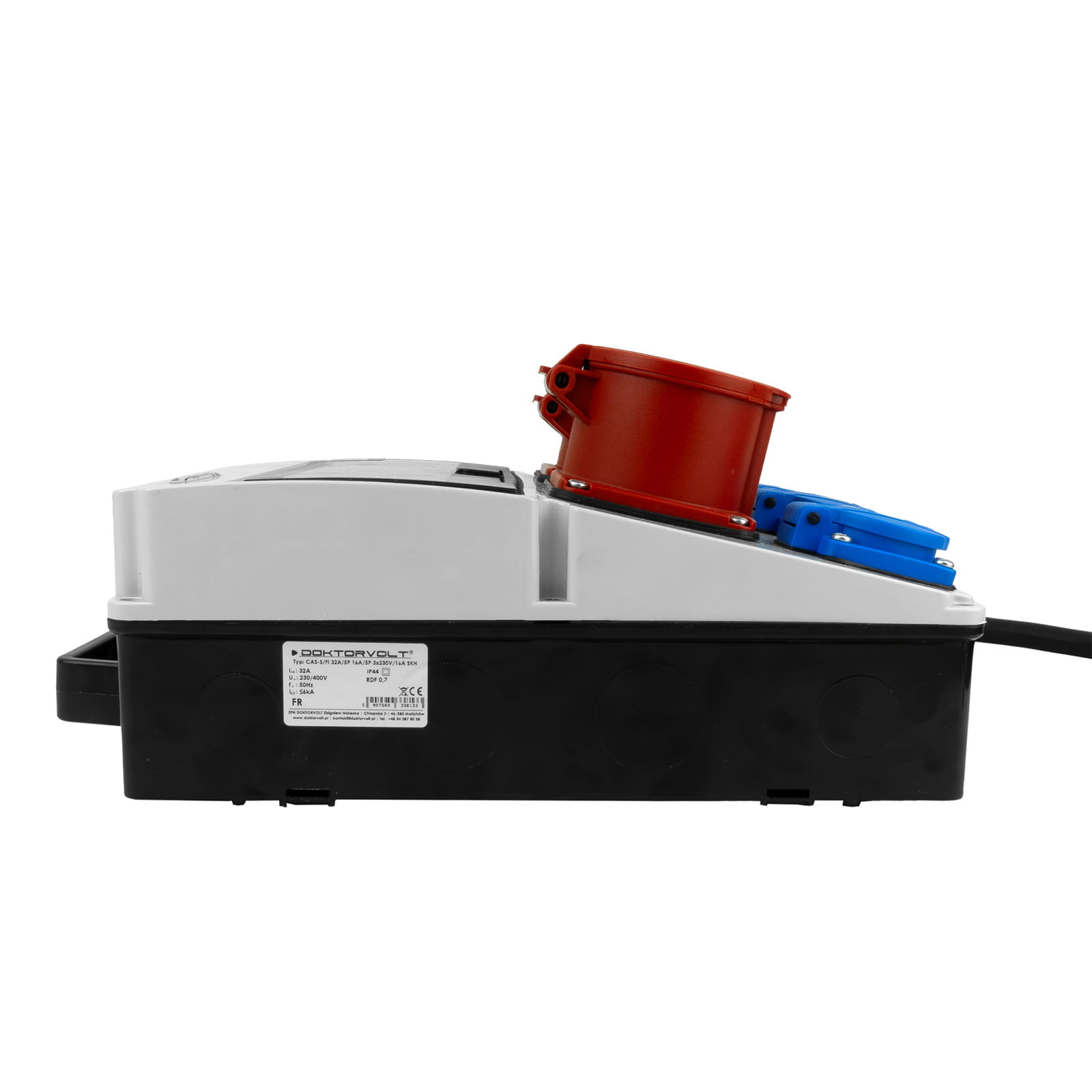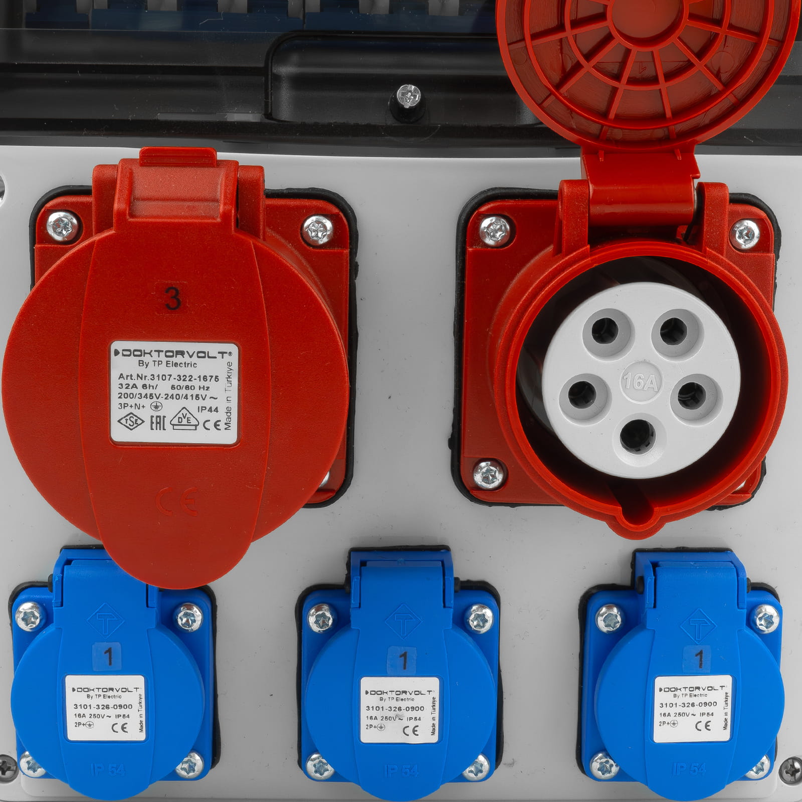 Rozdzielnica budowlana z serii CAS wykonana z najwyższej jakości materiałów. Wyposażona w zabezpieczenia marki Doktorvolt. Posiada 3 gniazda 230V 16A z bolcem ochronnym, 1 gniazdo 32A CEE 400V oraz 1 gniazdo 16A CEE 400V. Dodatkowym elementem jest zastosowanie jedno metrowego przewodu z wtyczką 32 A CEE 400V. Całość wykonana z dbałością o najmniejsze szczegóły.