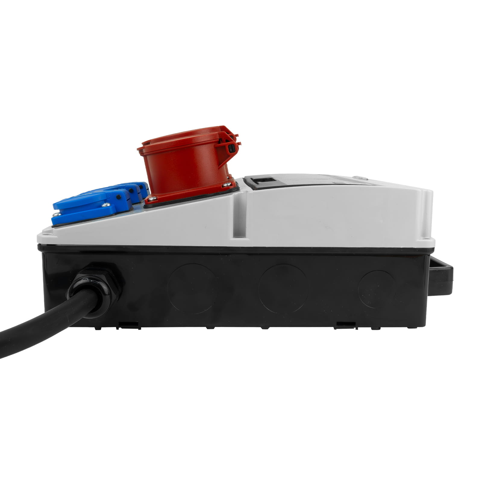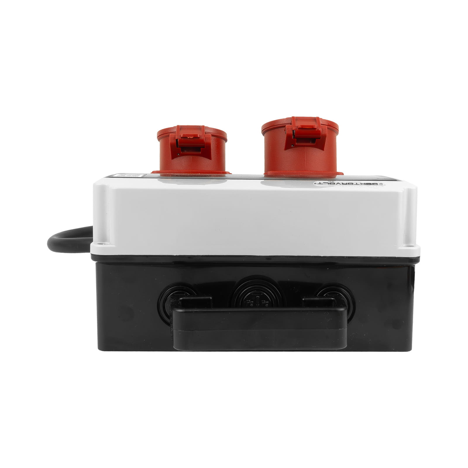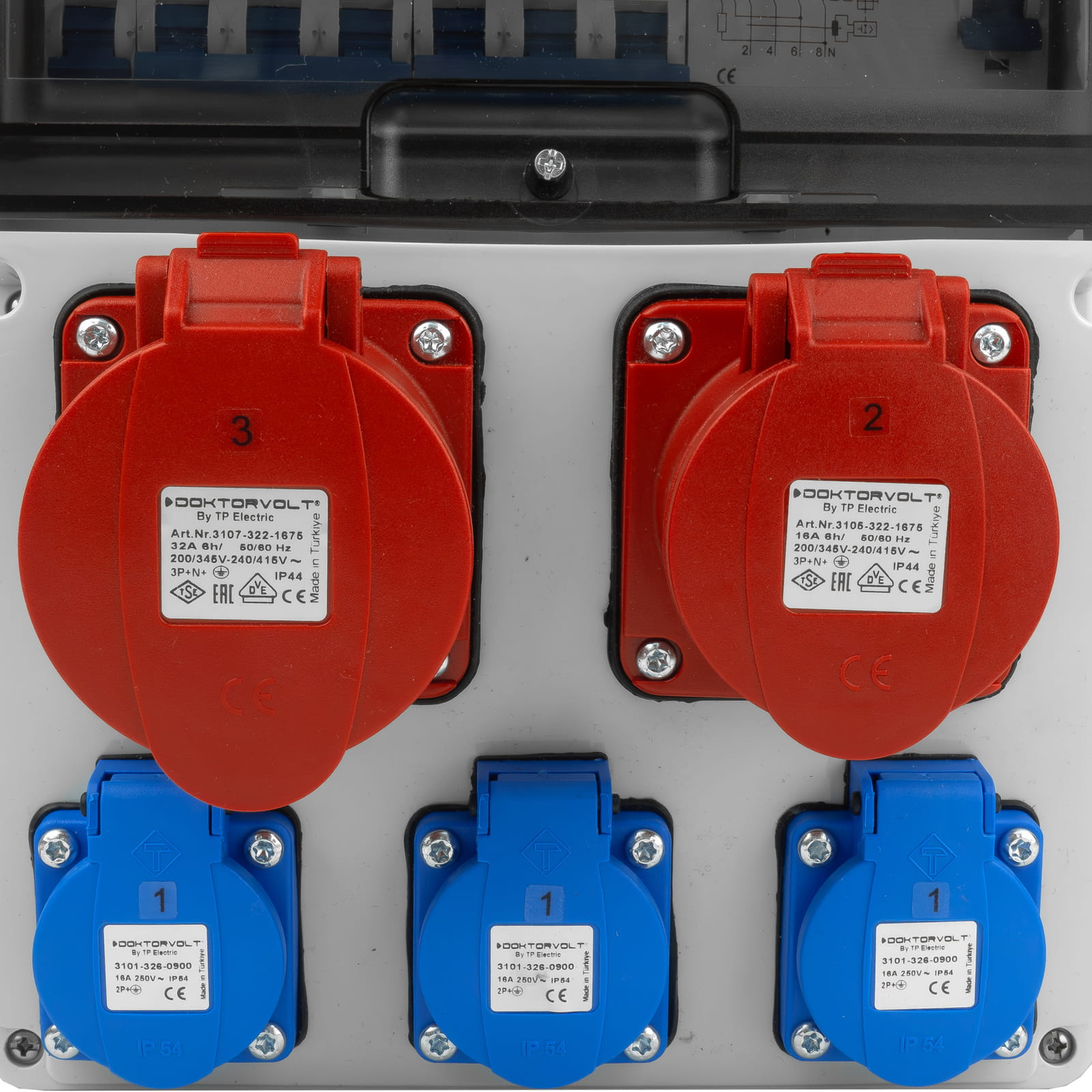 Rozdzielnica budowlana z serii CAS wykonana z najwyższej jakości materiałów. Wyposażona w zabezpieczenia marki Doktorvolt. Posiada 3 gniazda 230V 16A z bolcem ochronnym, 1 gniazdo 32A CEE 400V oraz 1 gniazdo 16A CEE 400V. Dodatkowym elementem jest zastosowanie jedno metrowego przewodu z wtyczką 32 A CEE 400V. Całość wykonana z dbałością o najmniejsze szczegóły.