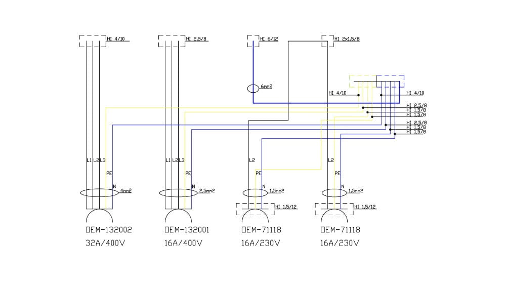 | rodzaj okablowania | Linka ster. H07V-K 1,5, 2,5, 4 mm2 żółtoziel. Linka ster. H07V-K 1,5, 2,5, 4 mm2 czarna Linka ster. H07V-K 1,5, 2,5, 4, 6 mm2 niebieska |