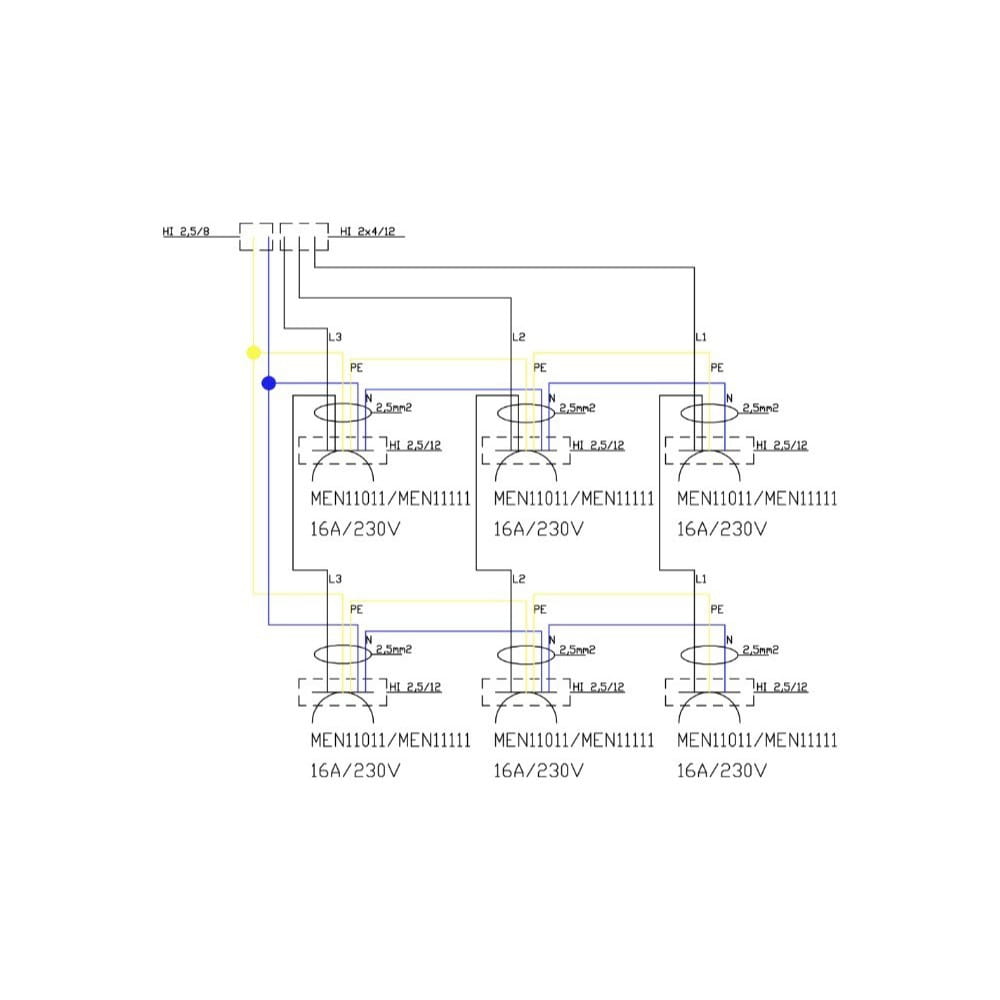 6 x 230V 16A 2p+E IP44 niebieskie Typ 11111 system francuski Typ E Mennekes |