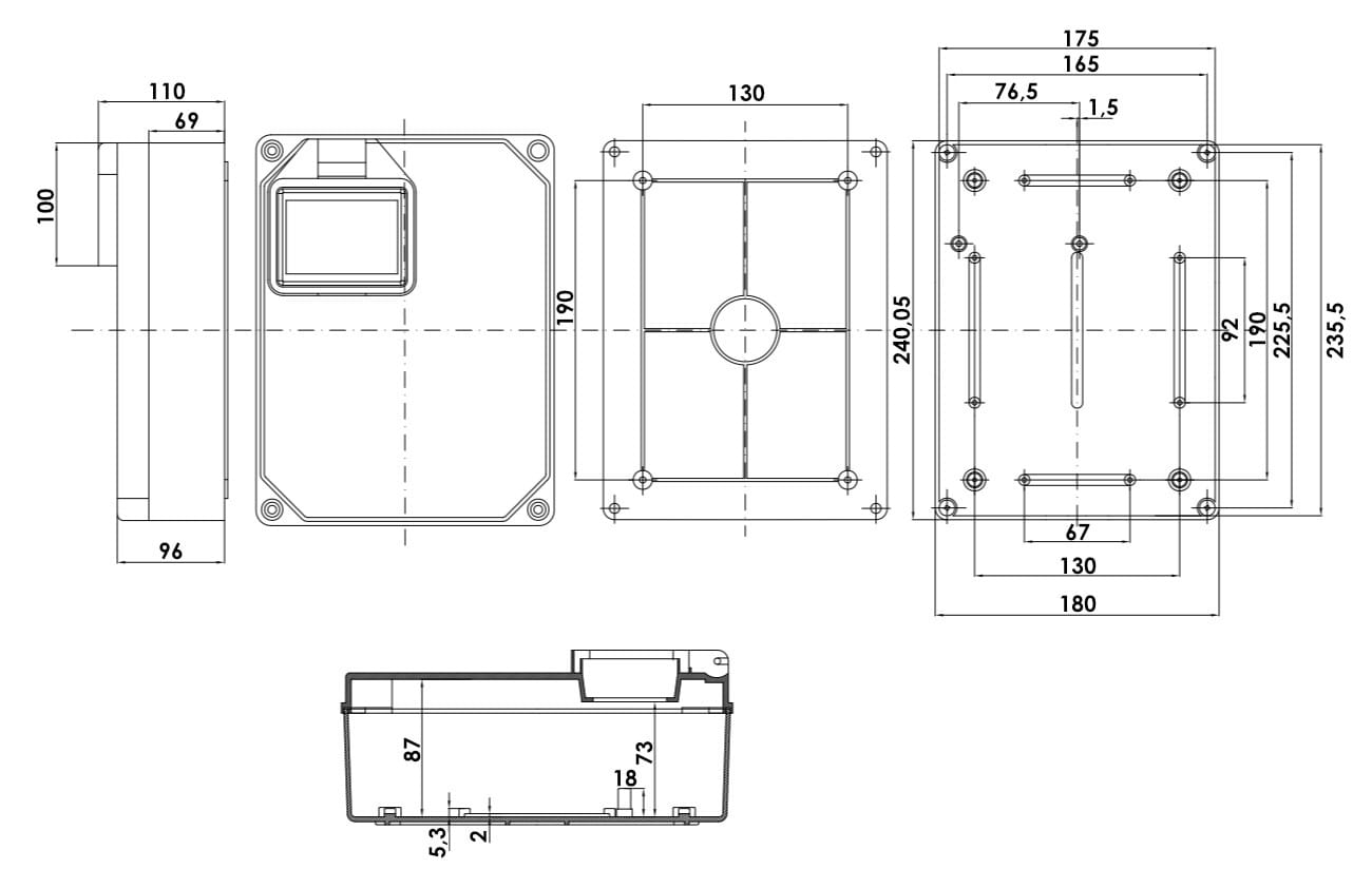 240,5 x 180 x 110mm (dokładne wymiary obudowy poniżej) |