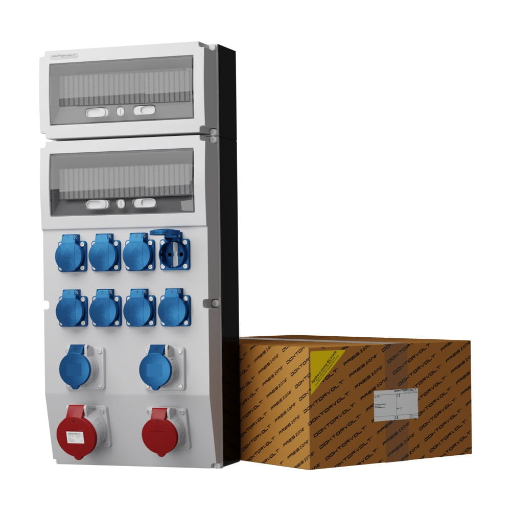 Rozdzielnica budowlana eXT 32A 16A kempingowe 2x16A 8x230V Schuko Mennekes Doktorvolt®