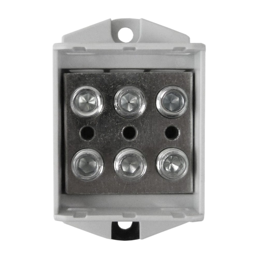 Złączka szynowa 1,5-50mm2 nieb. 6 otworów zaciskowych 1 torowa AL/CU gwintowa 1000V na szynę TH35 1polowa MAA3050B10 Morek