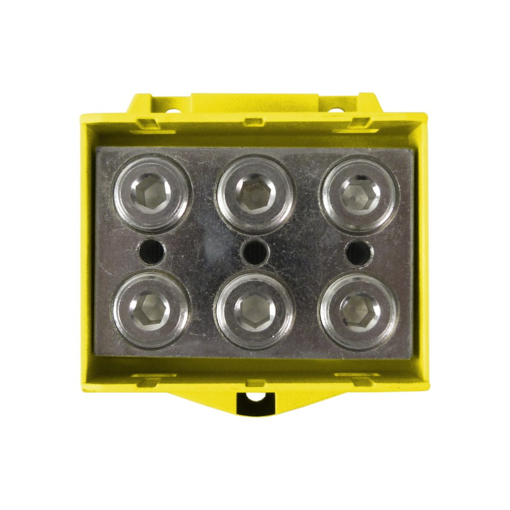 Złączka szynowa 25-150mm2 żó-zie 6 otworów zaciskowych 1 torowa AL/CU gwintowa 1000V na szynę TH35 1polowa MAA3150Y10 Morek